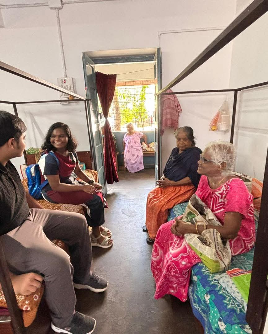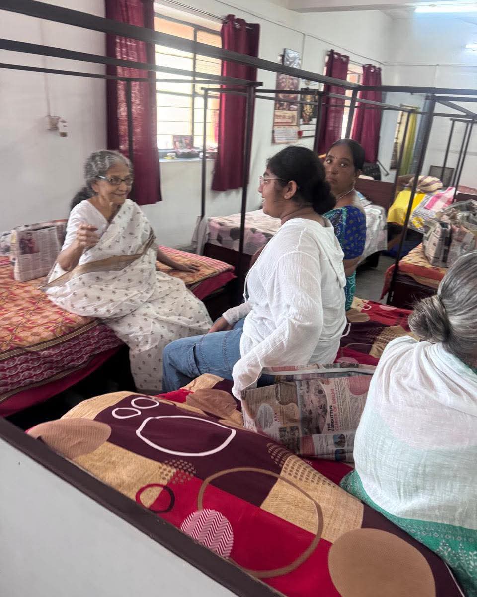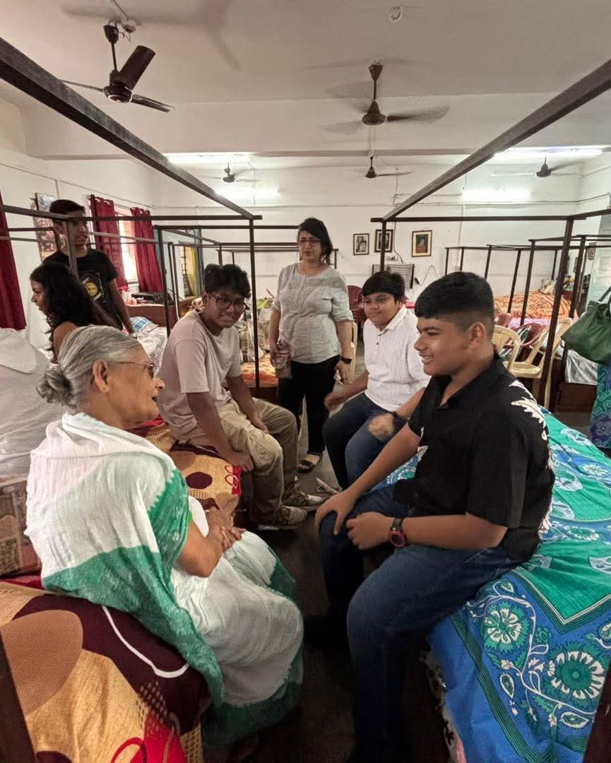 And so keeping with Akshar's tradition, this year too the Class 10 students visited an old age home as part of our social service initiative. The funds provided by Akshar School’s Social Service endeavours were used to prepare gift packets for the women residing in the old age home . During the visit, the students interacted warmly with the inmates, listening to their stories and experiences. Many of the women shared about their families—some spoke of children who had abandoned them, while others recalled the loss of loved ones.